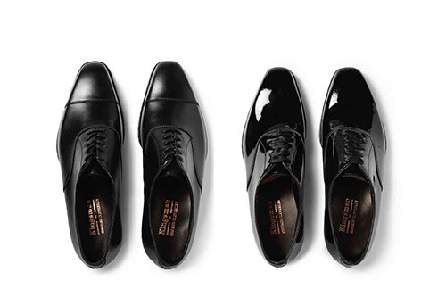 รองเท้าหนังสไตล์ผูกเชือกสีดำหรือสีน้ำตาลเข้ม ที่สามารถเข้ากันกับสูทสไตล์ Kingman ได้อย่างดี